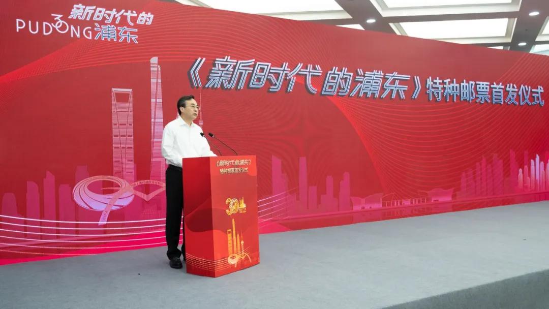 馬軍勝在致辭中指出,開發(fā)開放浦東,是黨中央、國務(wù)院在我國改革開放和現(xiàn)代化建設(shè)關(guān)鍵時(shí)期作出的一項(xiàng)重大戰(zhàn)略決策。經(jīng)過30年不懈努力,浦東經(jīng)濟(jì)社會(huì)面貌發(fā)生了翻天覆地的變化、取得了舉世矚目的發(fā)展成就,成為了我國改革開放的橋頭堡和排頭兵?!缎聲r(shí)代的浦東》特種郵票在方寸間展示了30年來浦東人民敢闖敢試、先行先試的示范效應(yīng),體現(xiàn)了上海人民貫徹習(xí)近平新時(shí)代中國特色社會(huì)主義思想、服務(wù)國家重大戰(zhàn)略的精神風(fēng)貌,也彰顯了上海更好為全國改革發(fā)展大局服務(wù)、努力建設(shè)人民城市的堅(jiān)定決心。在三十而立之年,浦東唱響了勇立潮頭再出發(fā)的宣言。我們相信,浦東一定能夠把黨中央、國務(wù)院交給的重大戰(zhàn)略任務(wù)落實(shí)好推進(jìn)好,當(dāng)好新時(shí)代全國改革開放排頭兵、創(chuàng)新發(fā)展先行者。希望上海市郵政快遞業(yè)增強(qiáng)“四個(gè)意識(shí)”、堅(jiān)定“四個(gè)自信”、做到“兩個(gè)維護(hù)”,充分發(fā)揮快遞企業(yè)總部集聚的優(yōu)勢(shì)特色,扎實(shí)推動(dòng)行業(yè)高質(zhì)量發(fā)展,為全面建設(shè)現(xiàn)代化郵政強(qiáng)國、創(chuàng)造新時(shí)代上海發(fā)展新奇跡作出新的更大貢獻(xiàn)。