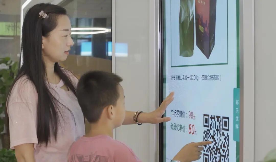 無實物超市的建設(shè)依托郵政現(xiàn)有實體渠道,發(fā)揮郵政貨源優(yōu)勢,融合線上與線下,門店承擔商品配送和推介、線上渠道承擔推廣和成單功能,構(gòu)建起網(wǎng)點的零售場景,形成了一個零售新業(yè)態(tài)。它不同于“郵樂小店”APP或者線上微商,具備超市的功能屬性,但不是實時購物的超市。合肥市海恒營業(yè)所覆蓋特色商圈,網(wǎng)點的13塊電子屏滾動展示52款自營大單品和安徽特色農(nóng)產(chǎn)品,成為周邊商戶購物的新場所。上半年銷售商品5萬余元,同比增長11%。
