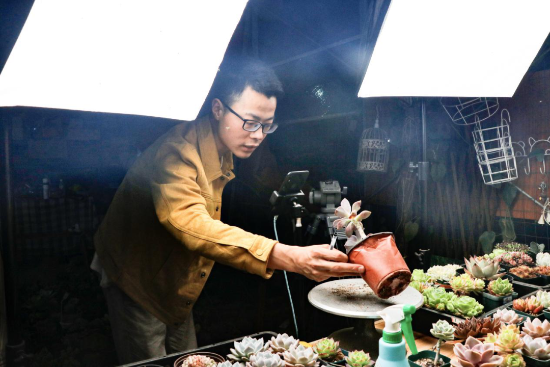 直播的時候,徐曉華全家齊上陣,自己做主播,妻子做直播小助手,姐姐負(fù)責(zé)上鏈接做后臺運(yùn)營,爸媽管后端訂單發(fā)貨。如今,“火”起來的“多肉小王子”徐曉華,經(jīng)營著近1000種多肉植物,年銷售額近500萬元。