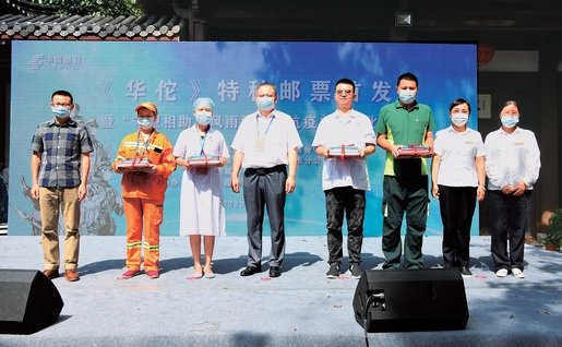 8月19日,適逢“中國(guó)醫(yī)師節(jié)”,湖北省武漢市郵政分公司在黃鶴樓公園舉行《華佗》郵票首發(fā)儀式暨“守望相助,風(fēng)雨同舟”抗疫主題文化展。在活動(dòng)現(xiàn)場(chǎng),武漢郵政向在新冠肺炎疫情防控期間勇敢逆行、默默奉獻(xiàn)的醫(yī)護(hù)人員、環(huán)衛(wèi)工人、快遞員代表贈(zèng)送了精美的郵品,向守護(hù)城市的逆行者表達(dá)衷心的感謝和崇高的敬意。武漢郵政藝術(shù)團(tuán)還帶來(lái)了精彩的文藝表演,來(lái)自武漢少年郵局的學(xué)生代表朗誦了“致敬最美逆行者的一封信”,受到了現(xiàn)場(chǎng)觀眾的歡迎。