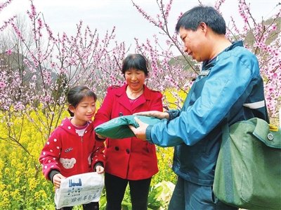鄉(xiāng)郵員切實履行郵政普遍服務(wù)的神圣職責(zé),為偏僻山鄉(xiāng)的老百姓送去包裹和小學(xué)生《學(xué)習(xí)方法報》?!鯒畹率?攝