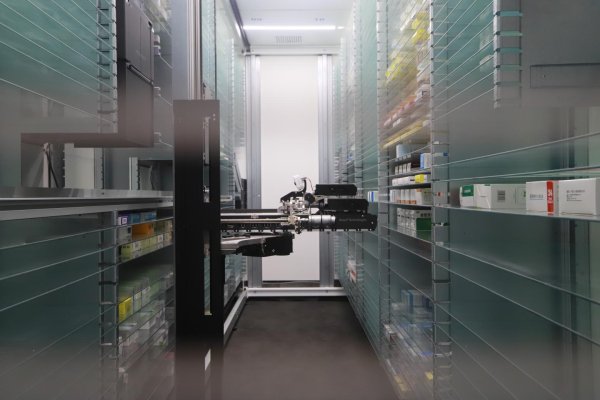 為何叫“智慧藥房”,其智慧又體現(xiàn)在何處?記者發(fā)現(xiàn),有別于傳統(tǒng)線下零售藥房,近150平方米的大廳,少了一排排貨架,多了觸摸屏等自助服務(wù)終端和一個貯有12000多盒藥品的冷鏈庫房。透過庫房櫥窗玻璃,記者看到一個機械臂正在迅速敏捷地循環(huán)往復進行配藥出藥,其原理是根據(jù)前臺發(fā)出的電子處方,通過激光實現(xiàn)精準定位,最快只需15秒即可完成配藥。記者還了解到,智慧藥房使用的全自動發(fā)藥機,系全國藥品零售藥房第一臺,該設(shè)備主要用于醫(yī)院。