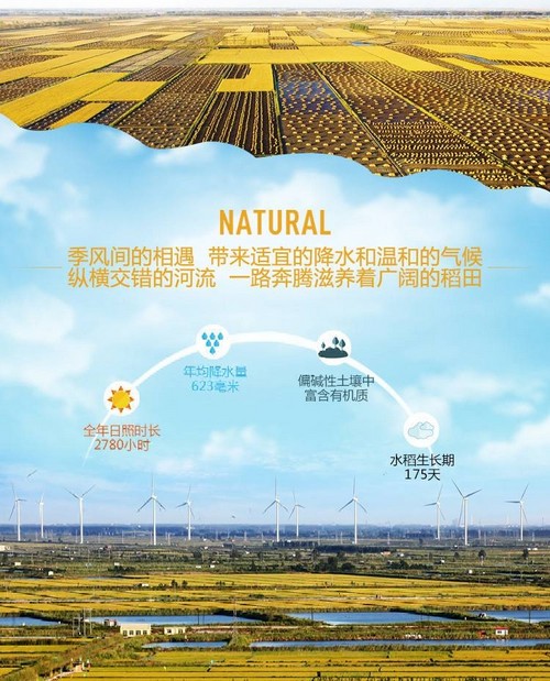 盤錦處于遼河入??冢|河三角洲的中心地帶,經(jīng)過漫長歷史年代的河流沖積、洪積和風(fēng)積作用,不斷覆蓋著深厚的四系統(tǒng)松散沉積物,這些沉積物對稻谷的生長環(huán)境提供了優(yōu)越環(huán)境。盤錦鹽堿程度高,土壤中的火山灰富含有機(jī)質(zhì),地表水層不易滲透,水稻在生長期間得到充分滋養(yǎng)。