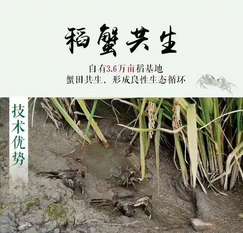 種植水稻的同時,采用生態(tài)立體種養(yǎng)技術(shù),在稻田里養(yǎng)蟹,蟹肥稻香,滿地金黃,令稻蟹互利共生。稻為蟹庇蔭、供養(yǎng);蟹為稻除草、滅蟲、凈化水質(zhì)、提供有機(jī)肥滋養(yǎng),充分發(fā)揮“1+1大于2”的效果,實現(xiàn)互利共贏,和諧共生。水稻和河蟹混養(yǎng)的田地不能使用農(nóng)藥和化肥,因而盤錦大米可以說是綠色、生態(tài)的代名詞!