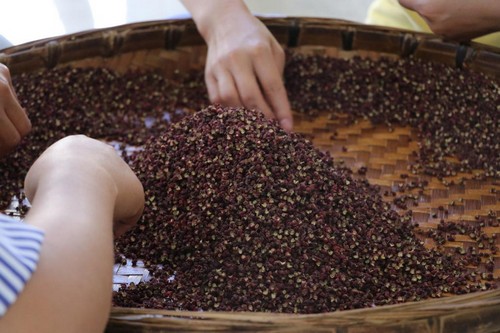 漢源椒農(nóng)采摘花椒一般選在晴天,采收的椒果干制后,色澤鮮、香氣濃、麻味足。采收技巧也非常有講究,需一穗穗小心摘下,否則壓破花椒油胞,花椒干制后就色澤暗褐,香麻味減,影響花椒質(zhì)量,可以說,每一粒精心采收的花椒里,都飽含著椒農(nóng)對(duì)收獲的喜悅和珍惜。