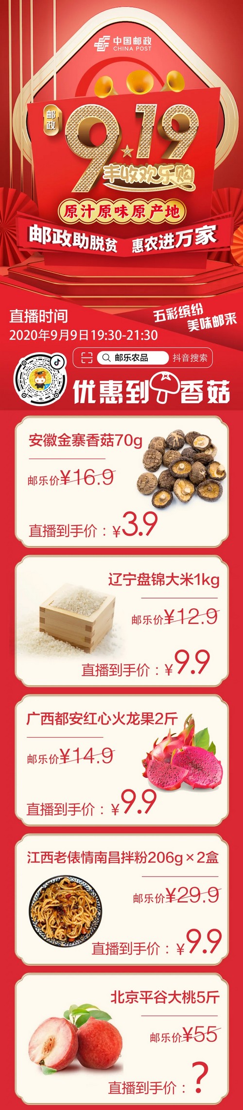 中國郵政919電商節(jié)首場預熱直播來啦!