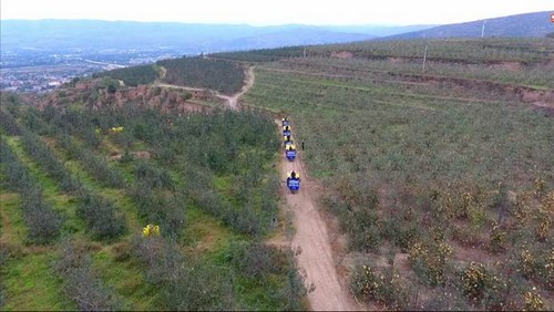 九月的甘肅,微風(fēng)漸涼,葉子開始枯黃,果實卻一顆顆飽滿的綴滿枝頭。秋風(fēng)吹過西北甘肅的果林,大地像被換上了一種絢麗的色彩。