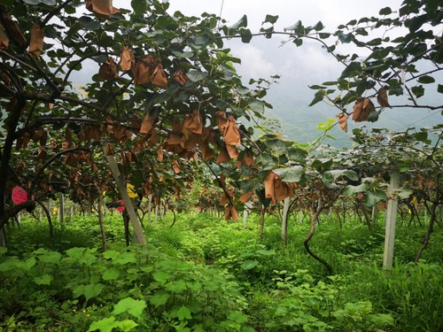 初秋,走進(jìn)中國(guó)郵政紅心獼猴桃基地,這里坐落在東經(jīng)104度,北緯26.5度的獼猴桃黃金生產(chǎn)點(diǎn)上,有著優(yōu)良的自然和氣候條件,郁郁蔥蔥的樹藤隨山坡連綿,一串串豐碩甜蜜的果實(shí)掛滿枝間,在陽(yáng)光映射下,棕色的果皮漫射出誘人的光澤,一片美景盡收眼底。