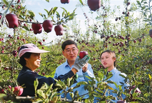 中秋時節(jié),郵儲銀行甘肅省天水市分行信貸員走進天水市麥積區(qū)農(nóng)業(yè)產(chǎn)業(yè)化重點龍頭企業(yè)潘引軍合作社,實地了解郵儲銀行信貸支持合作社蘋果種植情況。合作社社員隨手從掛滿果實的樹枝上摘下一個沉甸甸的蘋果,遞給信貸員看。信貸員望著眼前帶著果香的大蘋果,脫口而出:“今年這蘋果,真棒!”