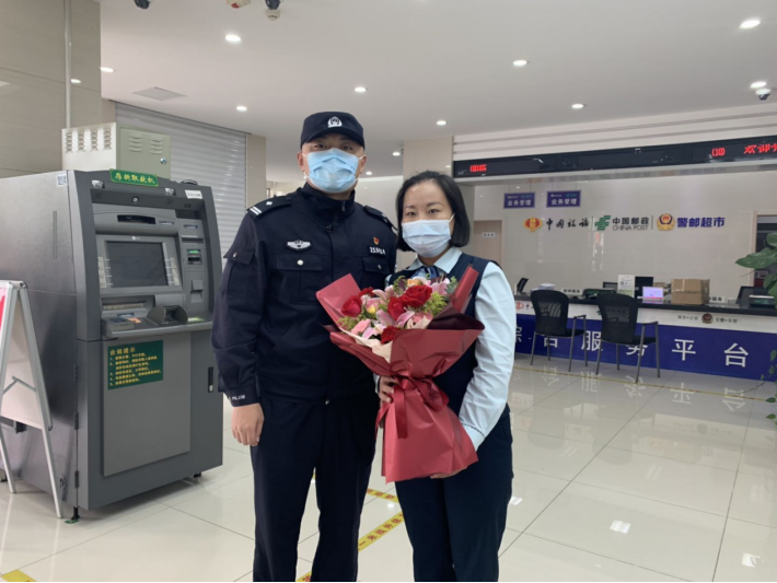 “感謝你積極出手攔截了這起電信詐騙,挽救了一個家庭?!?0月14日,浦口公安分局珠江派出所的民警及見義勇為珠江工作站一行人來南京浦口郵政分公司珠江支局,為理財經理顏燕獻上鮮花,并授予“見義勇為積極份子”稱號,以表彰其在防止客戶遭受電信詐騙中做出的努力和貢獻。