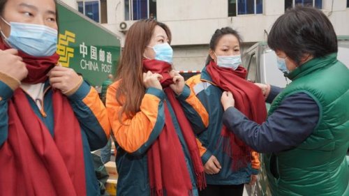 投遞員們在一線“沖鋒陷陣”,后方的保障工作也及時跟進(jìn)。為了幫大家出班時抵御風(fēng)寒,今天一大早,朝陽郵政工會就把2500條圍巾送到了投遞員的手中?!斑@圍巾厚實,天再冷也覺得特別溫暖,所有的辛苦都是值得的,我們會送好每一件包裹、每一份報刊,讓廣大市民和用戶都滿意?!薄把蚪q圍巾既柔軟又保暖,冬天出班再也不用擔(dān)心會冷了?!贝蠹艺f笑著一個個戴好了圍巾。據(jù)了解,朝陽郵政工會已制定了一系列的送溫暖計劃,讓投遞員們在緊張的工作之余有熱水喝、有熱飯吃、有地方休息,全力解決他們的后顧之憂。