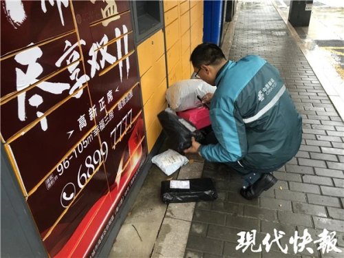 當(dāng)天早上7點,天氣寒冷,空中飄著淅淅瀝瀝的小雨。現(xiàn)代快報記者來到鹽城市大學(xué)城營投部,只見十幾個快遞員正在熱火朝天地分發(fā)快遞。