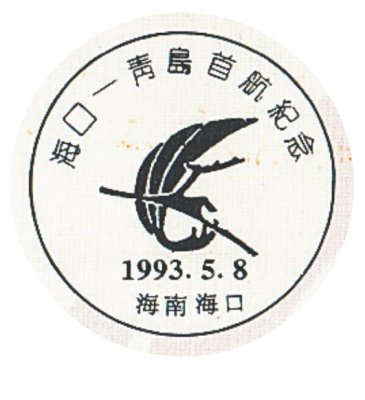 1993年5月8日,海南省航空公司開通了往返于??诤颓鄭u的直達(dá)航線,航程2500公里,每周六飛行一班。這條航線的開通對(duì)海南經(jīng)濟(jì)騰飛起到了積極的作用,進(jìn)一步促進(jìn)了兩市之間的政治、經(jīng)濟(jì)和文化的交流。??谑朽]票公司聯(lián)合海南省航空公司發(fā)行了首航紀(jì)念封。