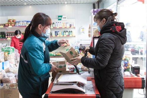 年關(guān)將至,便民站里,越來越多的商品擺上展臺,供居民選購?!懊酌婕Z油我都買齊了,今天來買點冰糖,回去做紅燒肉。”村民皮開仙左手冰糖,右手糯米,“做完肉,還準(zhǔn)備給孫兒做一道八寶甜飯。”