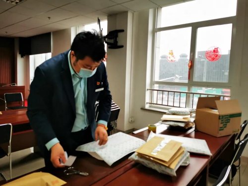 按照分工,柴閃閃負(fù)責(zé)代表團(tuán)內(nèi)的服務(wù)工作,陳蘭穎負(fù)責(zé)和代表團(tuán)以及駐地溝通,在符合代表團(tuán)規(guī)定和疫情防控要求的前提下提供郵政服務(wù)。3月6日中午時(shí)分,柴閃閃急匆匆地扒拉了兩口飯,就回到房間,一張張地將有需求的代表和工作人員填好的、由陳蘭穎特別制作的兩會(huì)服務(wù)單拍照回傳給她。東四郵局內(nèi),隨著手機(jī)上微信信息不斷響起,陳蘭穎帶著工作人員仔細(xì)對(duì)照服務(wù)單,給代表和工作人員分裝郵件。陳蘭穎說:“我的手機(jī)24小時(shí)開機(jī),有不清楚的問題,無論是閃閃還是其他代表可以隨時(shí)找我?!蓖砩?點(diǎn),經(jīng)過嚴(yán)格消毒處理的郵件被東四郵局的工作人員送到代表團(tuán)駐地,以“無接觸”的形式由工作人員領(lǐng)走。