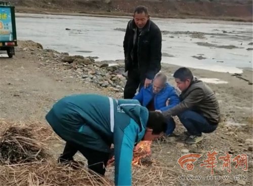 圍觀救援過(guò)程的村民們,有的拿來(lái)干凈的大棉襖,有的端來(lái)熱水,有的找來(lái)干草點(diǎn)燃生火……有兩個(gè)村民為老人換上衣服后,扶著他坐下來(lái)烤火,過(guò)了好一會(huì)兒老人才緩過(guò)勁兒,慢吞吞說(shuō)了句“我活過(guò)來(lái)了”。