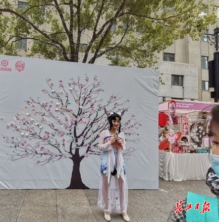 “我給弟弟寄了張櫻花明信片,希望他中考順利?!?月20日,江漢路步行街變身“櫻花一條街”,2021“花Young武漢”櫻·舞文創(chuàng)市集熱鬧登場,引來眾多年輕人打卡購物,給家人朋友寄櫻花明信片和櫻花快遞。