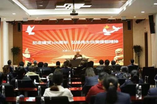 報(bào)告團(tuán)主講人劉石安現(xiàn)年91歲,是原二十軍59師炮兵參謀,劉老精神矍鑠,身著老軍裝,胸前掛著軍功章和紀(jì)念章,首先向大家介紹了上海人民子弟兵——原二十軍的歷史。二十軍是最早入朝參戰(zhàn)部隊(duì)之一,雄赳赳氣昂昂地跨過(guò)鴨綠江,同美國(guó)為首的由十六個(gè)國(guó)家組成的“聯(lián)合國(guó)軍”展開(kāi)了殊死戰(zhàn)斗。兩年中,經(jīng)歷了第二次戰(zhàn)役(即著名的長(zhǎng)津湖戰(zhàn)役)、第五次戰(zhàn)役、華川阻擊戰(zhàn)等無(wú)數(shù)次大小戰(zhàn)斗,重創(chuàng)敵軍,屢建戰(zhàn)功。隨后,他向大家講起抗美援朝戰(zhàn)爭(zhēng),劉老講述了楊根思和“冰雕連”的感人故事。在一次戰(zhàn)斗中,楊根思率領(lǐng)連隊(duì)打退美軍8次進(jìn)攻,最后只剩他一人時(shí),他以大無(wú)畏的革命精神,抱起炸藥包沖向敵群,與敵人同歸于盡……在長(zhǎng)津湖戰(zhàn)役中,穿著單薄衣服的志愿軍戰(zhàn)士埋伏在零下四十?dāng)z氏度的陣地上,100多名士兵在冰天雪地中保持作戰(zhàn)姿勢(shì),靜默犧牲。“冰雕連”戰(zhàn)士寧愿凍死也不撤退的精神給大家極大的震撼。