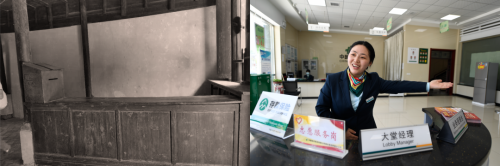 跨過高高的門檻,走進(jìn)湘鄂西省郵政總局舊址,看到木質(zhì)的柜臺上,一個陳舊的木質(zhì)信箱靜靜地立在一旁,穿越了那段歷史,展現(xiàn)在我們面前。我們仿佛看到郵政前輩們在柜臺前認(rèn)真地工作。在現(xiàn)代郵政寬敞明亮的營業(yè)廳內(nèi),拉開透明的玻璃門,大堂經(jīng)理微笑著熱情地迎來送往,堅守著人民郵政為人民的服務(wù)宗旨。