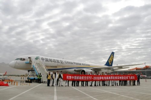 5月25日5點(diǎn)23分,一架噴涂著中國郵政航空的波音757-200飛機(jī),從四川成都雙流國際機(jī)場起飛,7點(diǎn)17分安全飛抵西藏拉薩貢嘎國際機(jī)場,后續(xù)按計(jì)劃順利完成在拉薩貢嘎機(jī)場全發(fā)起飛、進(jìn)近以及模擬單發(fā)失效復(fù)飛等計(jì)劃驗(yàn)證科目。至此,由民航北京監(jiān)督管理局組織的中國郵政航空高高原和RNP AR程序驗(yàn)證試飛取得了圓滿成功,在西藏和平解放70周年之際,“祝賀中國郵政航空B757-200拉薩機(jī)場高高原航線實(shí)地驗(yàn)證試飛成功”的橫幅,在高原上獵獵展開。