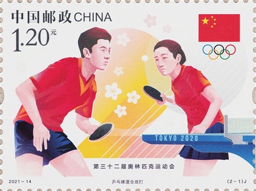 《第三十二屆奧林匹克運(yùn)動會》紀(jì)念郵票分別表現(xiàn)了乒乓球混合雙打、男子舉重。郵票畫面展現(xiàn)了運(yùn)動員在比賽中的精彩瞬間,藝術(shù)化地呈現(xiàn)了運(yùn)動的拼搏與競技之美、速度與力量之美。背景中的2021采用抽象化的幾何圖形呈現(xiàn),并點(diǎn)綴櫻花圖案,畫面虛實(shí)呼應(yīng)、充滿動感,烘托出運(yùn)動會熱烈的比賽氛圍。該套郵票由張強(qiáng)和胡曦設(shè)計(jì),河南省郵電科技有限公司膠版工藝印制。