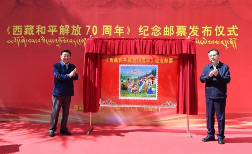 在西藏各族人民喜迎西藏和平解放70周年之際,8月16日,《西藏和平解放70周年》紀(jì)念郵票發(fā)布儀式在拉薩舉行。西藏自治區(qū)副主席甲熱·洛桑丹增,中國(guó)郵政集團(tuán)有限公司黨組書記、董事長(zhǎng)劉愛力致辭,并共同為《西藏和平解放70周年》紀(jì)念郵票揭幕。中國(guó)郵政集團(tuán)有限公司副總經(jīng)理康寧,西藏自治區(qū)、集團(tuán)公司相關(guān)部門負(fù)責(zé)同志出席。