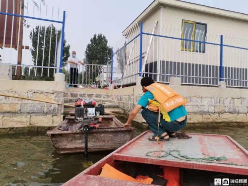 上午10點(diǎn)半,已經(jīng)被汗水濕透衣服的王少朋回到了丁樓村碼頭。簡單和碼頭上的村民寒暄兩句,甚至都來不及坐下喝口水,王少朋就收起船錨出發(fā)了。因?yàn)闀r間不容許他耽擱太久,接下來的四個村子,全都在水上,龔莊和柳溝相距較近,但是王蘇白和建閘距離較遠(yuǎn),從王蘇白村到建閘村,要在湖上航行整整一個半小時。