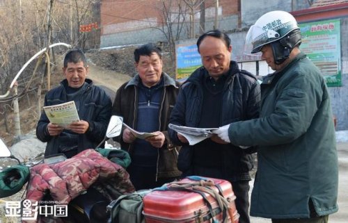 董乃軍(右)在大馬峪村投遞,他的摩托車一停,會吸引來許多村民。盡管作為一名農(nóng)村郵遞員待遇不高,但他已經(jīng)成為這條郵路上不變的風(fēng)景,山里的村民更是離不開他,他說:“我很熱愛自己的這份投遞工作,我舍不得山里的人們,我會一直沿著這條郵路走下去?!?/p>