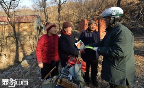 董乃軍為東峪村的李大媽(中)捎來代買的東西,李大媽很是高興,“小董這孩子太實(shí)誠了,心地也好,我這老太婆的生活指著他給我買東西了,我都離不開他了?!?。因?yàn)樯嚼餂]有郵政業(yè)務(wù)點(diǎn),他經(jīng)常在村民的家門口現(xiàn)場辦理郵寄、匯款等業(yè)務(wù),并且還為不便出山的老人代買藥物或用品,把點(diǎn)滴溫暖送給山村的人們,受到村民的交口稱贊。