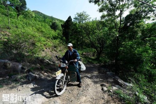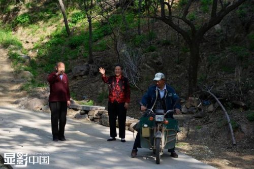 董乃軍負(fù)責(zé)200多個(gè)投遞點(diǎn),他每天需要帶著近百十斤重的郵包,翻越十幾座山頭為村民投遞,38年的時(shí)間已經(jīng)丈量了一百多萬公里的山路,騎壞了十幾輛自行車,但從沒有因?yàn)樘鞖庠蚧蜃约旱氖韬鲂傅《⒄`任何郵件的投遞,實(shí)現(xiàn)了38年無差錯(cuò)。圖為董乃軍從村里離開時(shí),老人們和他揮手告別。