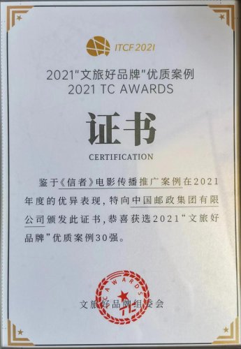守正創(chuàng)新、融通中外,傳播文旅好品牌。12月11日,2021第六屆博鰲旅游傳播論壇在海南博鰲舉辦,論壇現(xiàn)場發(fā)布了2021“文旅好品牌”優(yōu)質(zhì)案例30強(qiáng),由中國郵政集團(tuán)有限公司報送的《信者》電影傳播推廣案例榮獲該獎項(xiàng)。