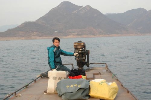 “這里既是庫區(qū),又是山區(qū)。送快遞,談何容易?”劉保朝說。這條郵路幾乎半為高山半為水,獨石溝鄉(xiāng)的1000多居民散落在環(huán)庫區(qū)4萬畝水面周圍的大小溝岔中。有的山溝幾里長,只住一戶人家。每天送信,劉保朝既要騎自行車,又要駕船行一半水路,還得步行爬山。