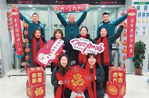 喜氣洋洋辭舊歲,虎虎生威迎新年。新年伊始,中國郵政廣大員工意氣風(fēng)發(fā)、豪情滿懷,全力開展業(yè)務(wù)旺季開門紅活動(dòng),大步邁進(jìn)推動(dòng)企業(yè)高質(zhì)量發(fā)展的新征程。在推進(jìn)代理金融業(yè)務(wù)發(fā)展中,重慶市萬州片區(qū)郵政分公司定下了一個(gè)“小目標(biāo)”:春節(jié)前,全區(qū)郵政儲(chǔ)蓄余額規(guī)模要突破200億元。作為萬州郵政代理金融的標(biāo)桿網(wǎng)點(diǎn),電報(bào)路郵政所員工一展“壬寅亮劍千帆競,金虎添億開門紅”的對(duì)聯(lián),積極營造營銷氛圍,決心在網(wǎng)點(diǎn)儲(chǔ)蓄余額破億元的基礎(chǔ)上,再創(chuàng)新業(yè)績。