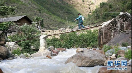 桑南才送郵件途中經(jīng)過獨(dú)木橋 劉東 攝