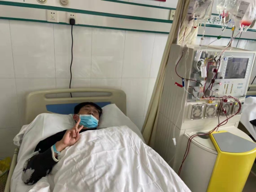 圖為馬廣原在醫(yī)院進行造血干細胞采集