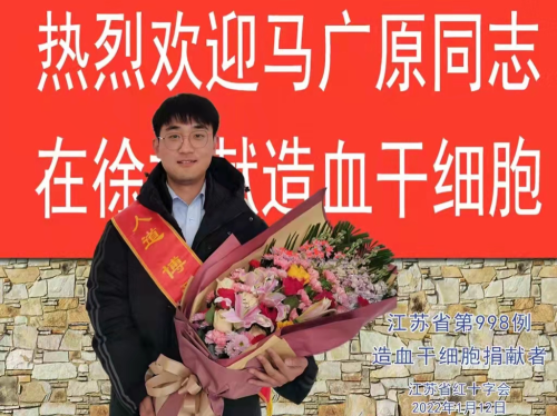 2018年,在一次無償獻血時,馬廣原看到招募造血干細胞捐獻志愿者的海報,于是,在醫(yī)務人員的幫助下,讀大三的馬廣原毅然接受血液采樣,加入中華骨髓庫成為一名造血干細胞捐獻志愿者。