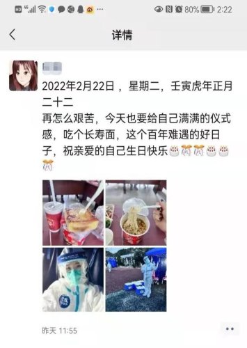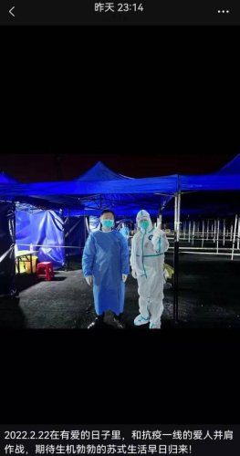 朋友圈里,他這樣記錄道:“2022.2.22在有愛的日子里,和抗疫一線的愛人并肩作戰(zhàn),期待生機勃勃的蘇式生活早日歸來!”