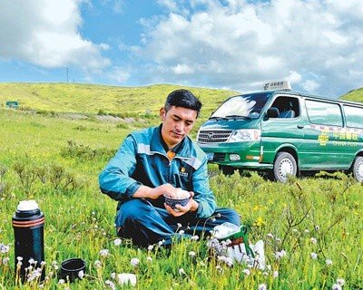 現(xiàn)在,叫他“草原信使”的少了,叫他“快遞小哥”的多了。哈弄奪機(jī)挺喜歡這個(gè)新稱呼,覺(jué)得自己年輕了不少。但跟風(fēng)風(fēng)火火的“快遞小哥”不同,草原上開(kāi)的是“慢車”。若爾蓋的旅游資源豐富,這幾年不少外地游客慕名而來(lái),又不熟悉路況,被困是常事,幫助游客也成了哈弄奪機(jī)的另一項(xiàng)工作。