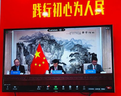 4月27日下午4點(diǎn),在全國人大與非洲法語國家議會(huì)線上研討會(huì)上,來自泰州的何健忠代表,在他工作的泰興市江平路郵政支局營業(yè)廳通過視頻連線,圍繞代表(議員)如何反映人民心聲這一議題,與非洲的喀麥隆、中非、科摩羅、吉布提、加蓬、尼日爾、塞內(nèi)加爾等國家的多名議員代表進(jìn)行線上交流。作為與會(huì)的全國三名基層代表中的一員,何健忠首次向世界講述了他的代表故事和履職感悟。