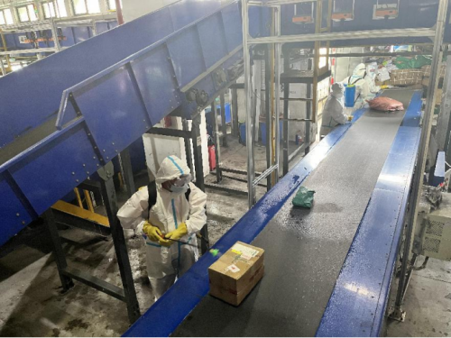 郵件到達(dá)營投部后,郵政人員對車輛和郵件還要進(jìn)行全面消殺。“工作人員上崗前發(fā)送健康碼和行程碼,到崗后第一件事先測量體溫做好登記,佩戴手套、口罩等,然后對車輛全部消殺一遍,對郵件外包裝至少每2小時進(jìn)行一次消殺……”中國郵政集團(tuán)有限公司南京市鼓樓區(qū)寄遞事業(yè)部副總經(jīng)理馬曉東說道,營投部每日進(jìn)行多頻次消殺和通風(fēng),從操作間地面、快遞傳送帶到每一個快遞包裹,都會噴灑消毒,確保全覆蓋、無死角,保證生產(chǎn)生活環(huán)境清潔安全。