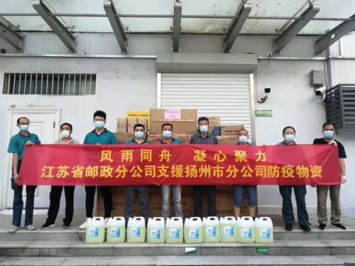 8月2日,省郵政工會將1560份自熱飯、300箱八親粥、300箱綠豆湯等慰問物資,連夜配送至揚州。緊接著,8月6日,省分公司辦公室又為揚州市分公司送來了3.2萬只口罩、0.24萬副一次性手套、10桶消毒液等防疫物資。