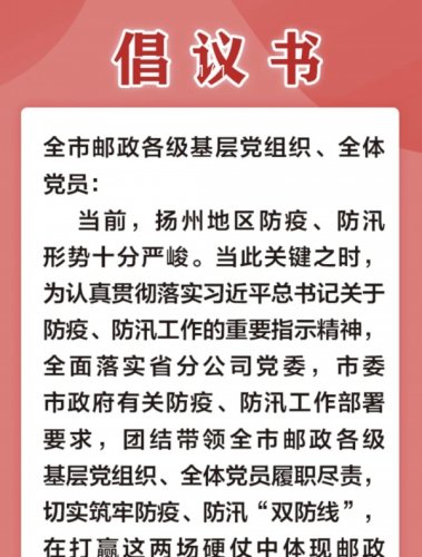 一篇倡議書,展現(xiàn)了全市郵政干部員工在這關(guān)鍵時刻,愿意勇挑重擔、齊心協(xié)力的擔當作為。
