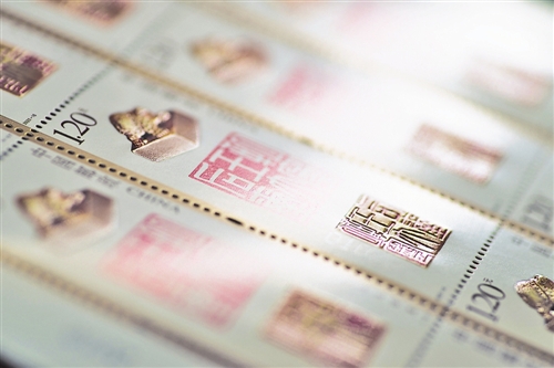容鐵在設(shè)計(jì)票面時(shí)采用偏黃的暖色調(diào),左右以金色襯托印章圖形,盡力將篆刻的傳統(tǒng)審美和中國漢字之美展現(xiàn)給郵迷。在容鐵看來,郵票原本是作為寄遞郵件貼用的郵資憑證而誕生,而今其原本的使用功能正在淡化,文化傳播和收藏鑒賞的功能卻越發(fā)凸顯。他至今仍對(duì)20世紀(jì)集郵市場(chǎng)的欣欣向榮記憶猶新:每當(dāng)新郵發(fā)售,前來搶購的郵迷們總會(huì)在郵局排成長隊(duì)。人們將郵票精心收納入冊(cè),或從信封上剪下,放在手中細(xì)細(xì)把玩。郵票在信息交流途徑匱乏的年代是人們交流的重要媒介,如今更是“國家名片”,是歷史的承載,也是文化的傳承。