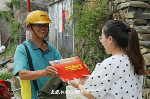 8月的青山界山麓酷熱難耐,午飯后,大多村民都宅家聊家常、睡午覺。此時,身穿綠色工服、頭戴紅色安全帽的中國郵政集團(tuán)錦屏縣分公司鄉(xiāng)郵投遞員張林昌,正騎行在各村寨間投送郵件。