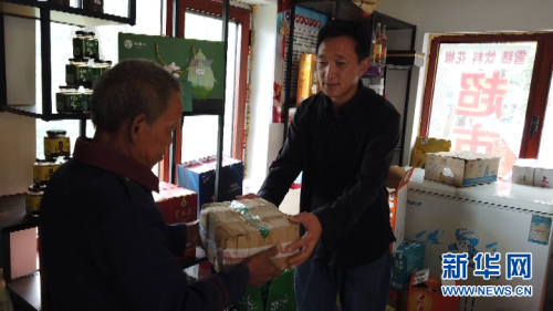 張海根在服務站為村民代收快遞