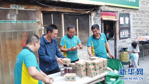 張海根與郵政工作人員一起打包花椒
