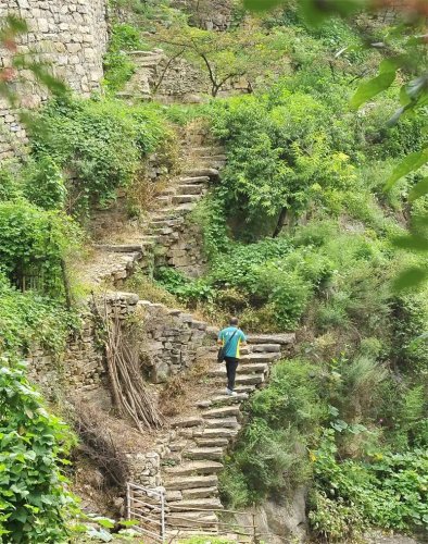 “記憶中,我上初中時才第一次走古道下山,到鄉(xiāng)里上中學?!睋?jù)張海根介紹,岳家寨村群山環(huán)繞,過去僅靠一條懸崖邊的古道與外界相連。村民靠肩背膀挑把山貨運下山,再把生活物資運上來。