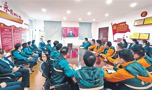 浙江省湖州市郵政分公司織里快包攬投部員工認真收看黨的二十大開幕會直播。□錢云杰 攝影報道
