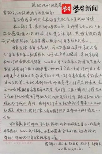 提及信中的內(nèi)容,鄭小愛說:“幾十年沒和舅舅見過面,很多話想說卻又不知道從哪兒說起,我在信中告訴舅舅,母親和我們姐弟四人現(xiàn)在過得都很好,信中還問了他的生活怎么樣,家里的孩子工作學(xué)習(xí)如何,最后留了我和弟弟的電話號碼,希望他看到信以后能跟我們聯(lián)系?!?/p>