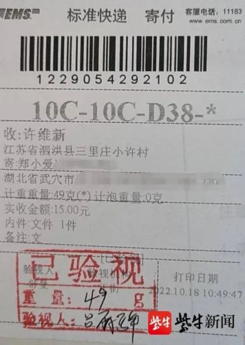 10月19日下午,郵遞員曹子祥像往常一樣,按照地址把一封封信件送到收信人手中。然而,一封信息不完整的信件讓他犯了難。收件人叫許維新,沒有電話號碼,地址為泗洪縣三里莊小許村。這里的村民早就已經(jīng)搬遷,以現(xiàn)有的信息,無法找到收件人。